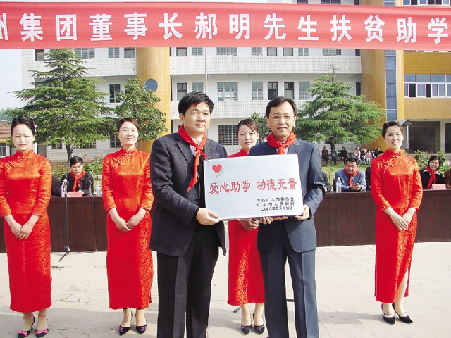 广水市委书记李耀华为爱心人士郝明先生颁发助学匾牌