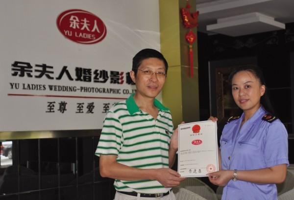 余夫人婚纱影楼注重服务质量,强化企业管理,赢得了良好的社会和经济效益。近日,该影楼“余夫人”商标获国家工商总局商标局授予的商标注册证,成为我市摄影行业首家荣获注册商标的企业。(本报记者 赵建新 陈德友 摄)