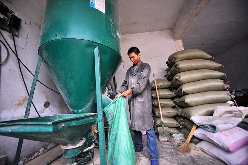 图3:养猪场的饲料都是二毛采用科学配方,自己加工按比例配制的。