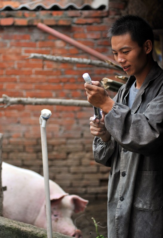 图4:猪场的防疫都是二毛一个人完成的。在他的精心照顾下,生猪没发生过疫情。