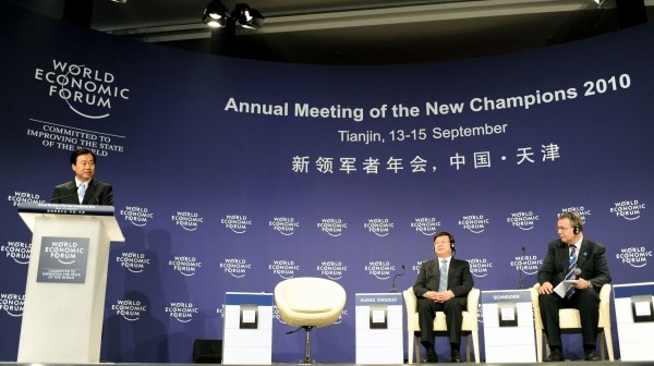世界经济论坛2010年新领军者年会(第四届夏季达沃斯论坛)15日下午在天津落下帷幕。世界经济论坛执行董事兼首席运营官施耐德在闭幕式上宣布,下届论坛将于2011年9月12日至14日在大连举行,而2012年论坛将再回天津。9月13日至15日,素有“世界经济风向标”之称的达沃斯论坛围绕“推动可持续增长”的主题展开深入讨论,密集安排了80多场讨论会,有近90个国家和地区的超过1500名来自商界、政界、学界和社会团体的代表云集天津,密集上演“头脑风暴”,围绕从商业模式中为未来市场创造新价值,通过科学技术提升竞争力,推动经济和社会变革,制定有效的全球、行业和地区解决方案等四大议题展开了讨论。 (新华社发)
