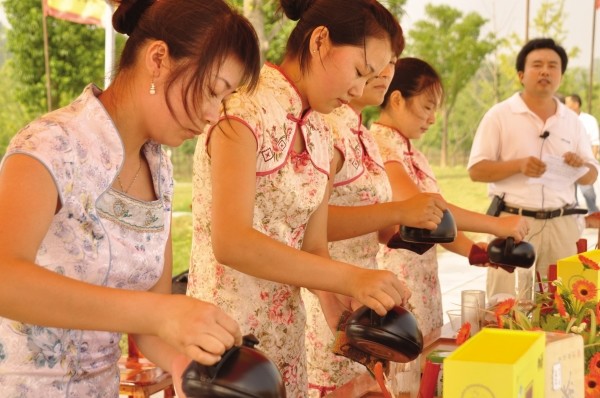 市神农茶业集团在炎帝神农故里景区农耕文化展演活动开幕式上,进行茶道展示。缅怀神农业绩,倡导茶业文化。(本报记者 陈德友 摄)