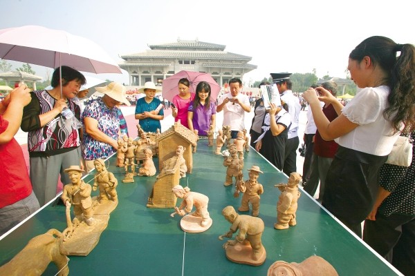 ◆栩栩如生的民间泥塑作品,再现了农民生产、生活的场面,吸引了众多游客的观赏。