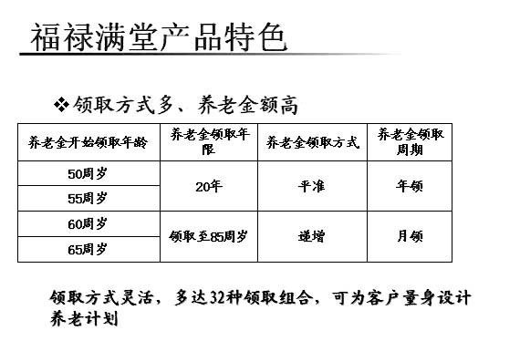 金秋九月,中国人寿正式推出了一款专为退休生活倾心打造的全新的养老年金保险产品——“福禄满堂”。该款产品集养老金领取和分红收益双高特点,兼具疾病和意外保障于一体,是对现有养老保险产品的进一步升级,也是社会养老保险的有益补充。