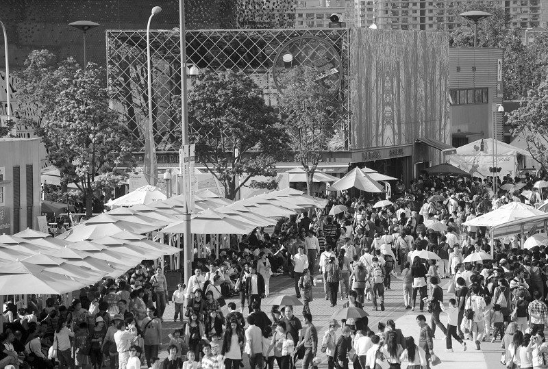 9月23日,世博园内人头攒动。据世博网公布的统计数据显示:截至当日18时,上海世博会单日入园人数达61.56万,再创历史新高。 (新华社发)