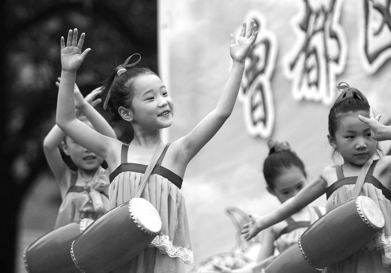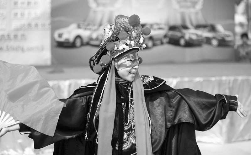 近日,随州女子学校、曾都区实验小学等单位以各种形式喜迎国庆佳节(上图)。随州女子学校更是把舞台搭在街头,该校表演的川剧“变脸”深受观众好评(左图)。(本报记者 孙洪涛 摄)