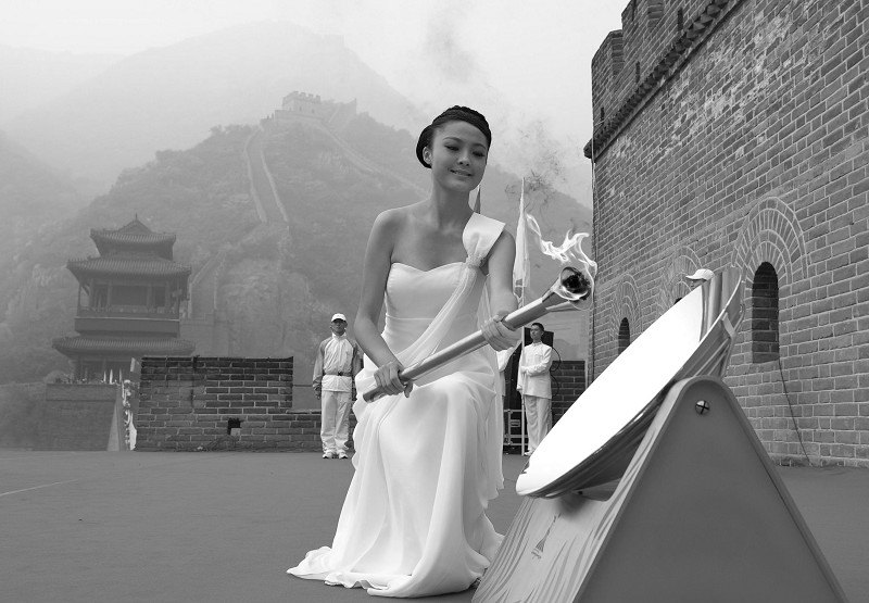 10月9日,采火使者康辰晨引燃火种棒,成功采集火种。当日,第16届亚洲运动会火种采集仪式在北京居庸关长城北烽火台举行。新华社发