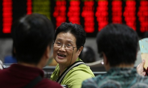 10月11日,股民在上海一家证券营业部谈论股市行情。当日,沪指收报2806.94点,涨68.20点,涨幅2.49%;深成指收报12237.65点,涨326.28点,涨幅2.74%。(新华社发)