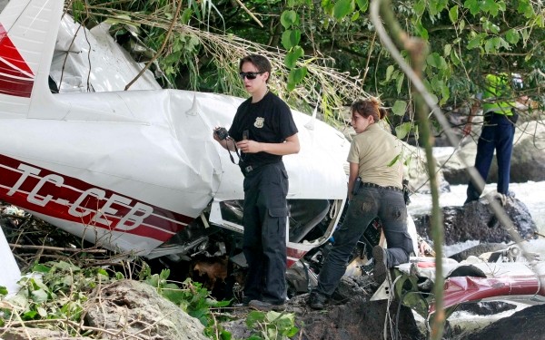 10月10日,一架装有毒品的轻型飞机在哥斯达黎加境内坠毁。这架飞机在危地马拉注册,飞行目的地是危地马拉,机上两名乘员也是危地马拉人,毒品被装在发动机舱内。图为工作人员和警察对坠毁飞机进行调查。