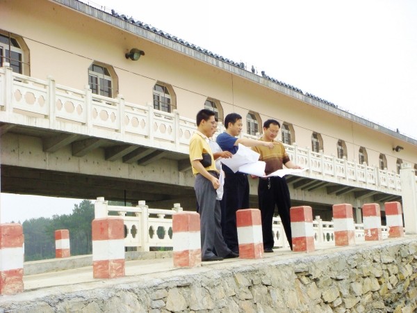 开展重大工程项目跟踪审计,确保工程项目质量和效益。审计人员对先觉庙水库大坝除险加固工程质量进行现场勘察。