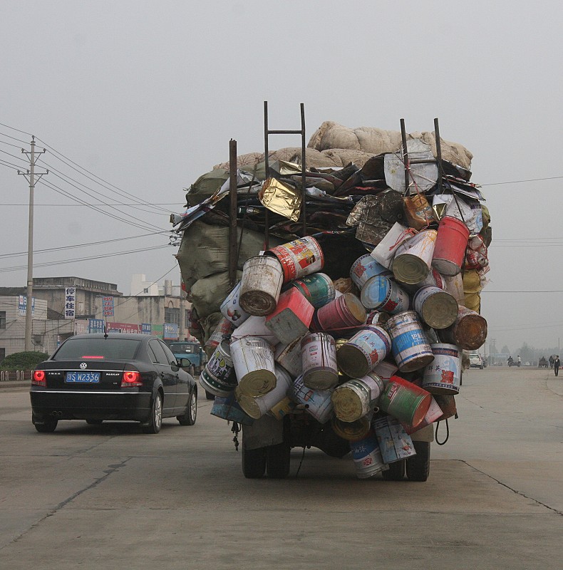 图3:10月10日,随州城区附近316国道上,一辆小汽车载满易燃易爆的废旧油漆桶、棉套等物品。