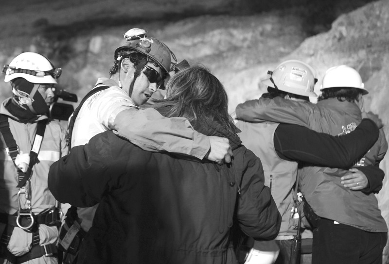 第一位顺利抵达地面的被困矿工阿瓦洛斯与妻子拥抱