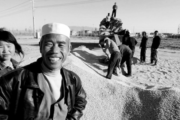 图一:58岁的宁夏粮农马海福家有6口人,42亩地。他说,前几年取消了统筹提留和农业税,现在种粮还有补贴,每亩地年净收益达到1000多元,比前些年增加近两成。(2006年11月10日摄) ·新华社发·