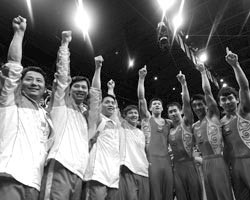 10月22日凌晨,2010年世界体操锦标赛在荷兰阿霍伊体育馆结束了男子团体决赛争夺,中国队以274.997分再次战胜日本队获得团体冠军,日本队以273.769分获得亚军,预赛发挥非常一般的德国队在决赛中发挥出色,他们以271.252分获得了第三名。这次夺冠,是中国男队第九次夺得世锦赛冠军,也是第二次实现四连冠。