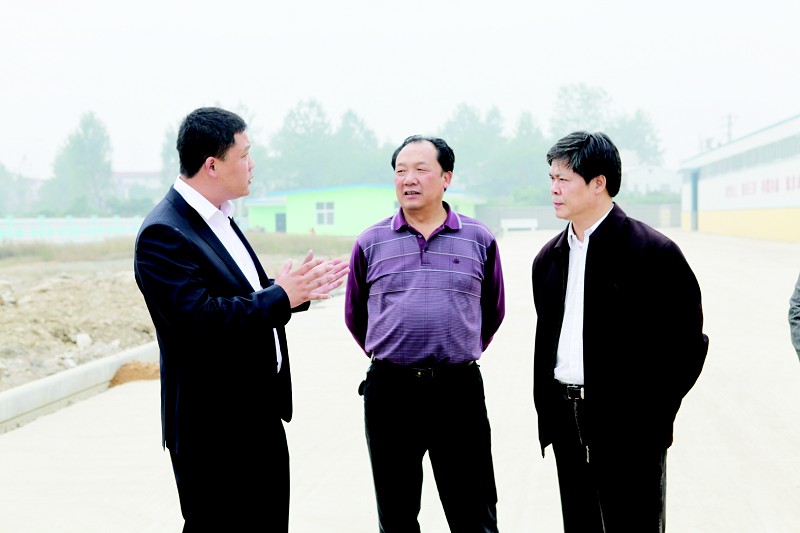 市委常委、副市长彭明方(右)和市农业局局长张明树(中)到三得利肥业公司检查指导工作
