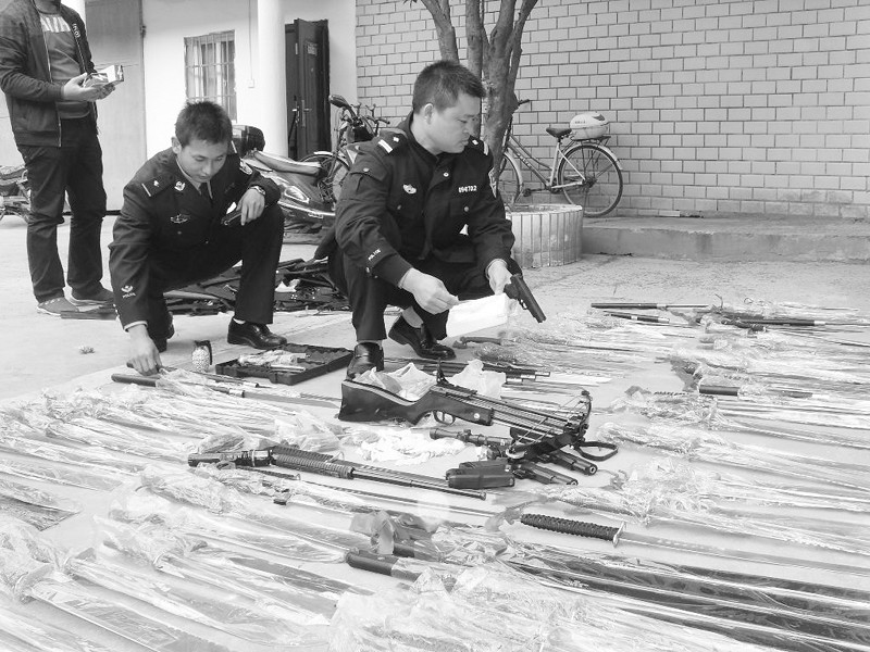 连日来,曾都公安分局组织警力,对市民反映强烈的城区解放路非法贩卖管制器具的违法行为进行整顿,共查缴各类管制器具近千件,仿真手机5把。 (徐军国摄 付柴娟文)