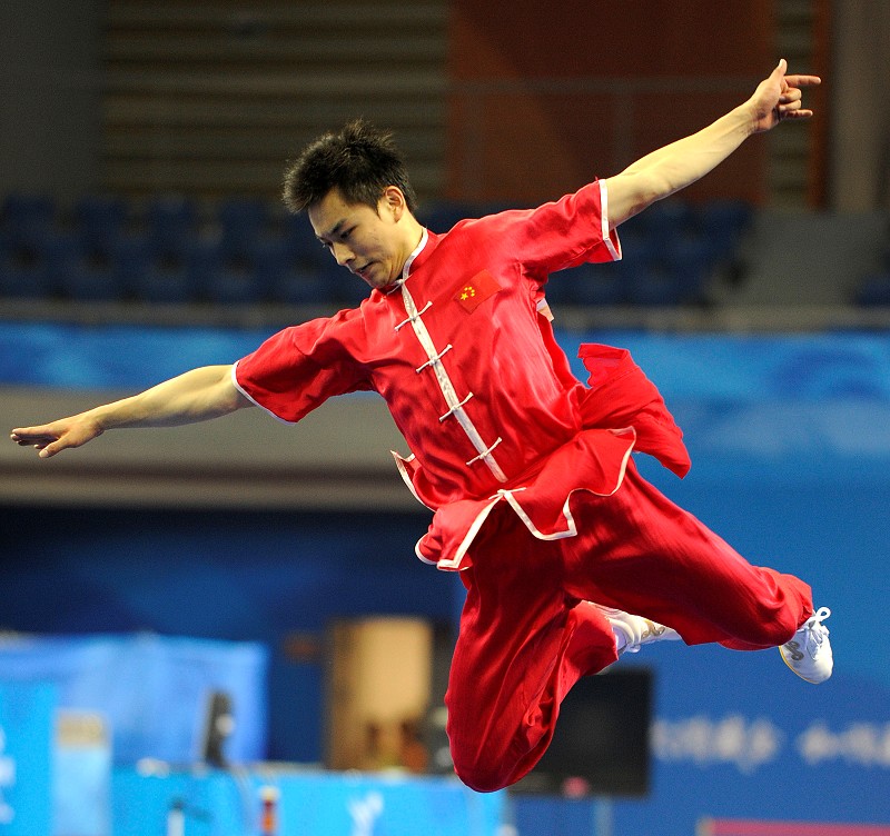 男子长拳比赛于8时30分在广州南沙体育馆开赛,共有12名选手参加了当天的比赛。身穿红色比赛服的袁晓超第七个出场,比赛中他精气神十足,动作大开大合,舒展流畅,最终以9.78分名列第一。最后一个出场的日本选手市来崎大佑以微弱劣势获得银牌,成绩为9.72分。伊朗选手伊赫桑·佩甘巴里以9.70分获得铜牌。来自山西的袁晓超出身武术世家,是两届武术世锦赛冠军和多哈亚运会该项目金牌得主。