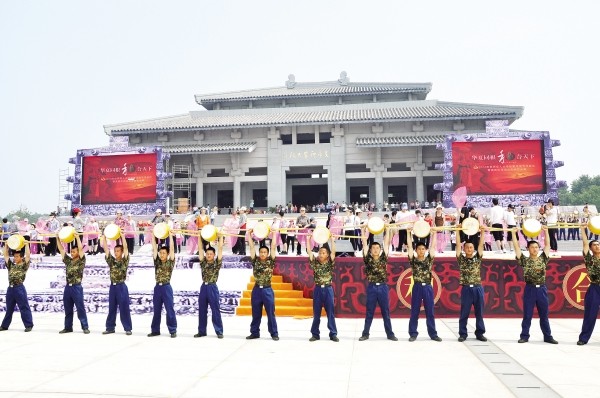 ◆在“寻根节”开幕式彩排现场,文艺工作者指导群众演员。