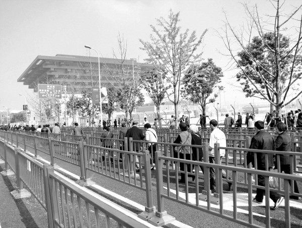 十二月一日,参观者走向中国馆。当日,上海世博会中国国家馆重新开放,迎来世博会后首批参观者。中国国家馆将续展半年。(新华社发)