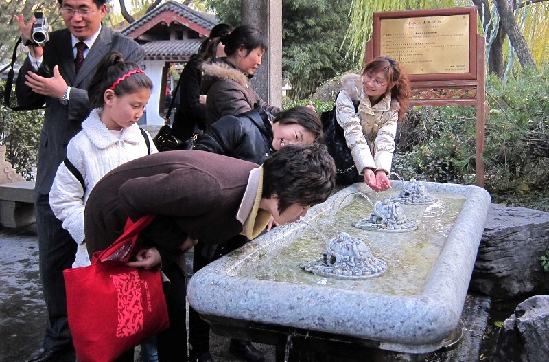 12月4日,游客在趵突泉公园品尝泉水。当日,有“泉城”之称的山东省济南市最高气温达到17摄氏度。记者从济南市气象台获悉,这是1961年有整编气象资料以来,济南市迎来的50年来最晚一次入冬。 新华社发