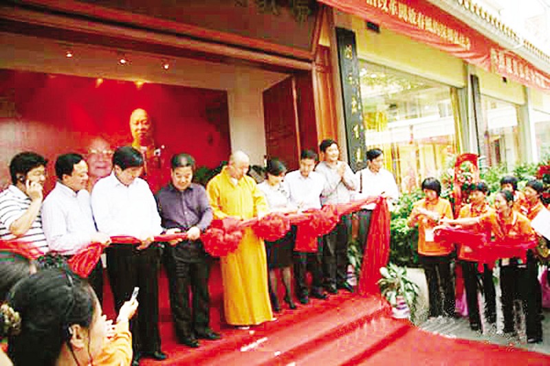 市领导樊建国、何光中、雷文洁、陈德培在深圳文化招商。图为市领导和中国佛教协会副会长、大洪山慈恩寺住持印顺在为深圳弘法寺 “盛世禅踪”展览馆开馆剪彩。
