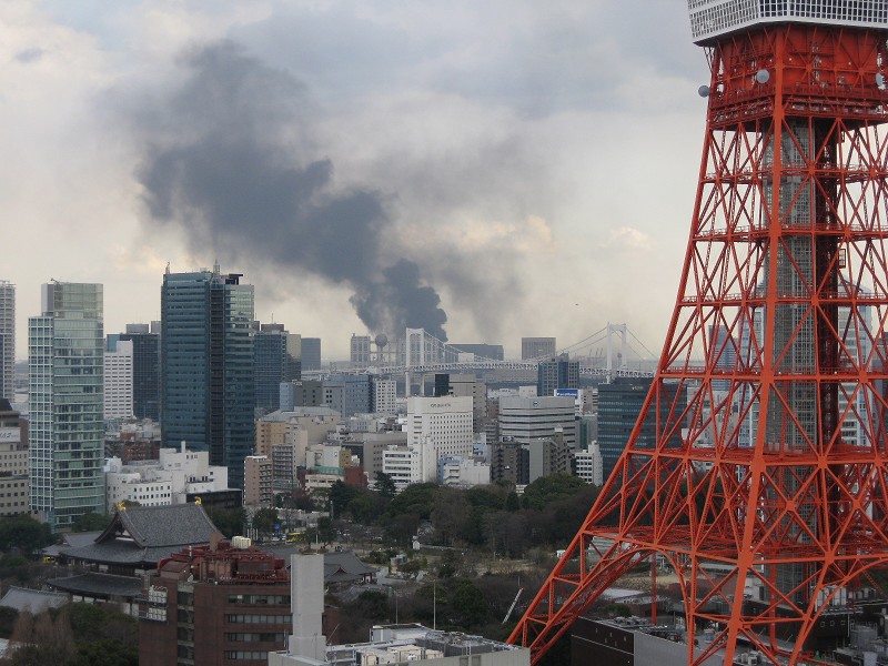 3月11日,东京湾彩虹桥附近在地震后起火。