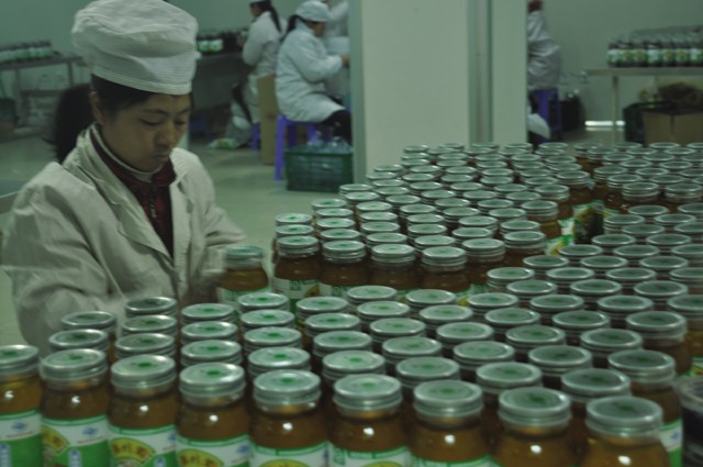近日,随州集蜂堂生物科技有限公司邀请武汉的数百名消费者,来到位于曾都区何店镇浪河的生产基地(如下图),让他们亲眼目睹蜂蜜的采集、生产、加工等流程。左图为蜂蜜生产车间包装一角。(本报记者 陈德友摄)