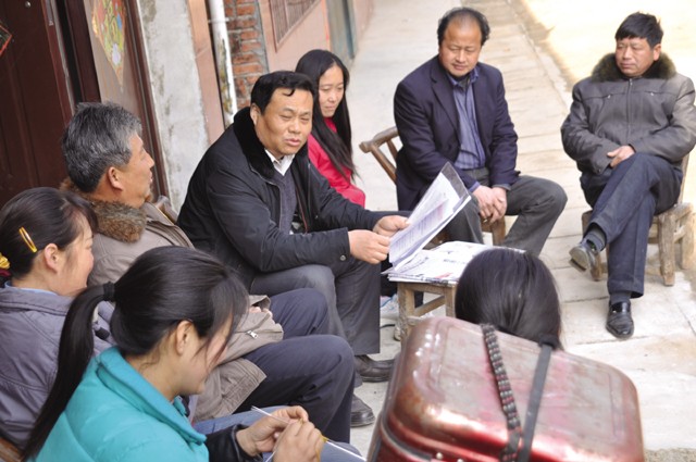 3月9日,曾都区科学技术协会负责人带领有关技术人员来到何店镇响堂村,向农户推广科技知识,帮助村里制订村级经济发展规划。 (本报记者 陈德友摄)