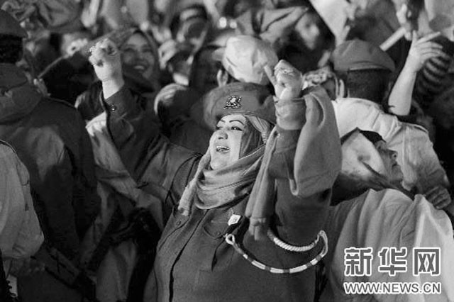 3月19日,在利比亚首都的黎波里,一名女兵参加游行示威。据利比亚电视台20日报道,截至目前已有约64人在空袭中死亡,另有150人受伤。