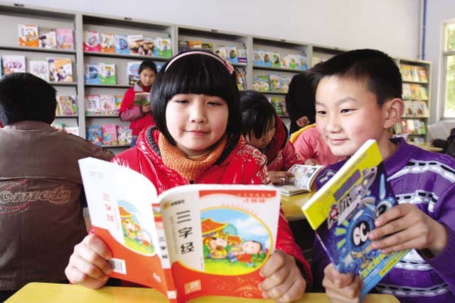 3月14日,曾都区洛阳镇高小学生在新建的校图书阅览室阅览读物。开年以来,该校广泛开展校图书室、班级图书角建设,在校园墙面张贴历代名人画像、格言警句,利用宣传橱窗定期举办诗文长廊,为校园营造浓厚的书香氛围。