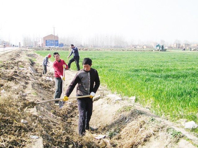 开年后,随县厉山镇积极争取到国家、省水改工程资金2000多万元,用以改造何家畈3万余亩高产粮食生产基地。图为沙城村农民清渠沟的情景。 (本报记者 陈德友 通讯员 龚承斌摄)