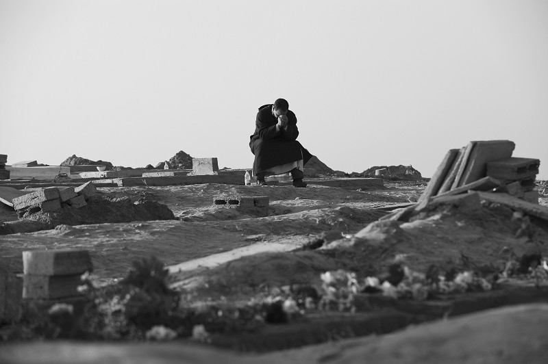 3月24日,在利比亚首都的黎波里,一名市民在公墓中凝思。利比亚官方当日宣布,近100名平民在西方联军空袭中丧生。