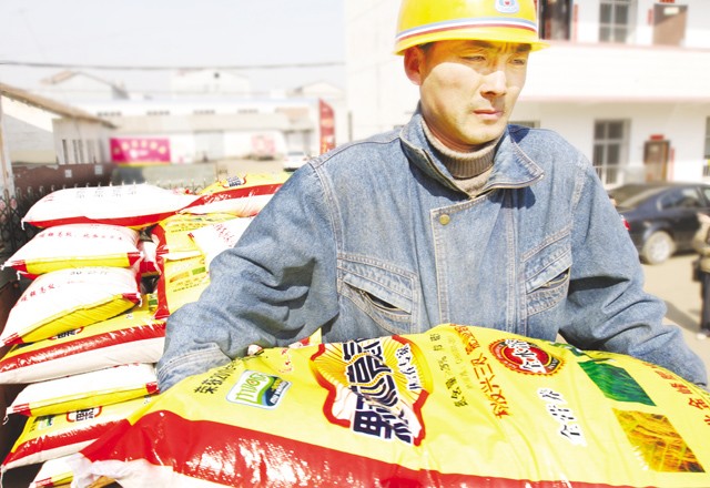 3月27日,工人在湖北金峰肥业有限公司装载春耕备耕肥料。该公司开年以来,注重产品质量,扩大市场销路,各类肥料销往全国各地。