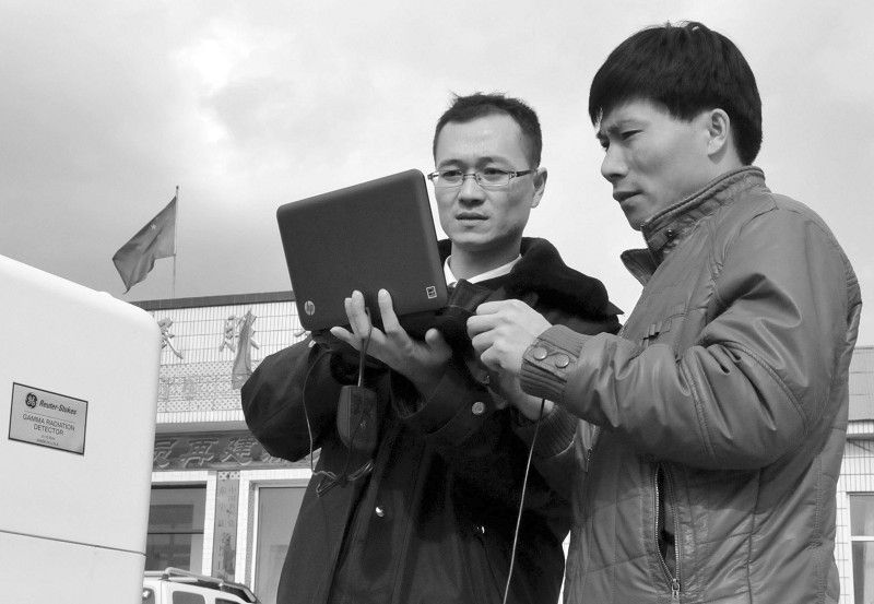 国家核事故应急协调委员会27日发布消息称,今天继续在我国黑龙江省东北部空气中发现了极微量的人工放射性核素碘。有关专家表示,这些极微量的放射性物质对我国环境和公众健康不会产生影响。图为技术人员在监测点调取电离室数据。(新华社发)