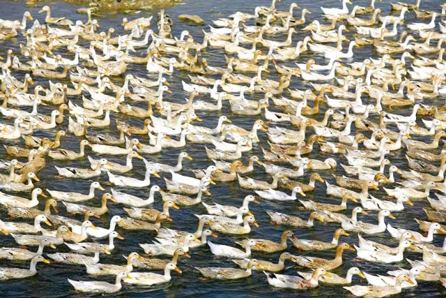 随县洪山镇大力发展养鸭业,据介绍,一个养鸭大户每年的养鸭收入近10万元。(本报记者 孙洪涛摄)