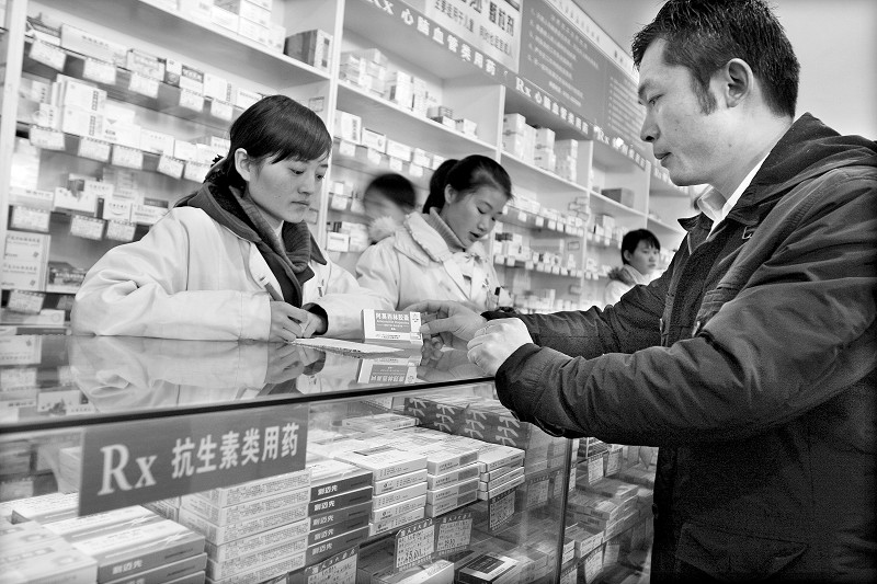 3月29日,一位市民在城区天力大药房购买降价的抗生素药。按照国家发改委的统一部署,我市从3月28日起降低部分主要用于治疗感染和心血管疾病的抗生素及循环系统药品最高零售价格,共涉及200多个品种。调整后的价格比现定价格平均低40%。 (本报记者 杨闻名摄)