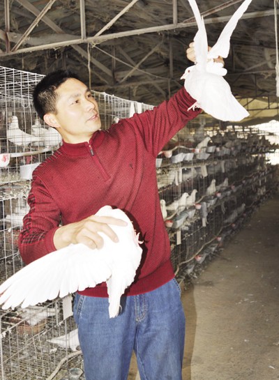 曾都区何店镇正兴养殖场科学饲养肉鸽,信誉拓展市场,被省内外品牌餐饮业常年选为供需伙伴,规模逐年发展,形成独特品牌。(本报记者 陈德友 摄)