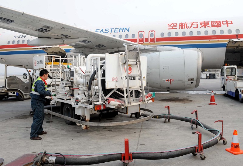 4月1日,一架航班在青岛流亭国际机场补充燃油。自当日起,2011年度国内航线旅客运输燃油附加单位收取率开始执行。新的燃油附加单位收取率比调整前降低了4.5%。这也是自国内航线实施燃油附加单位收取率以来,单位收取率第二次下降。 (新华社发)