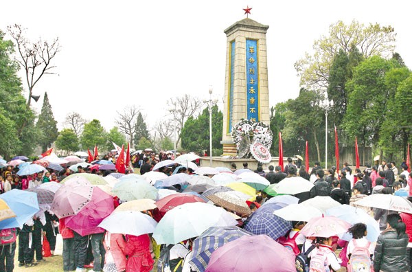 4月2日,随州科技职校、聚奎门小学等学校近千名师生冒雨来到随州烈士陵园扫墓,深切缅怀革命先烈。