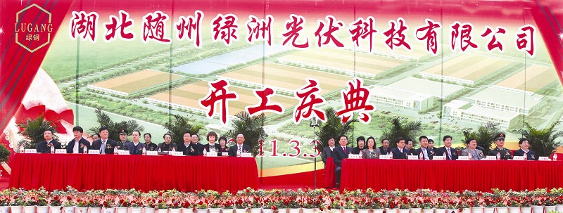 市委书记王祥喜宣布随州绿洲光伏科技有限公司隆重开建。市委副书记冯仲凯致辞。