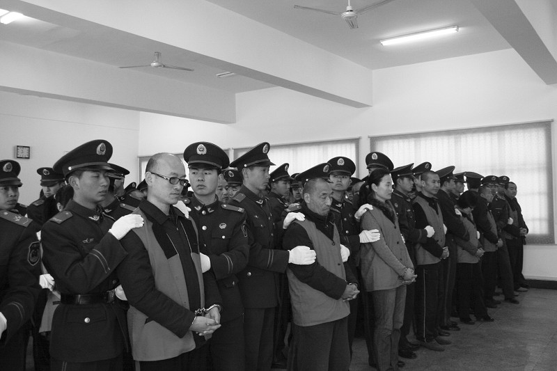 4月2日,法庭上,39名被告人正在等待法院一审宣判。当日上午,波及27个省市、4万多人、集资金额37亿多元的安徽亳州兴邦特大非法集资案在亳州市一审公开宣判,39名被告人分别被判刑。 新华社发