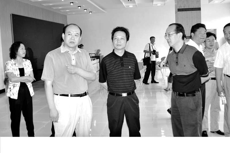 市长刘晓鸣(前中)、曾都区委书记杨增能(前右一)来公司调研,公司董事长邹首蔚(前左一)陪同。