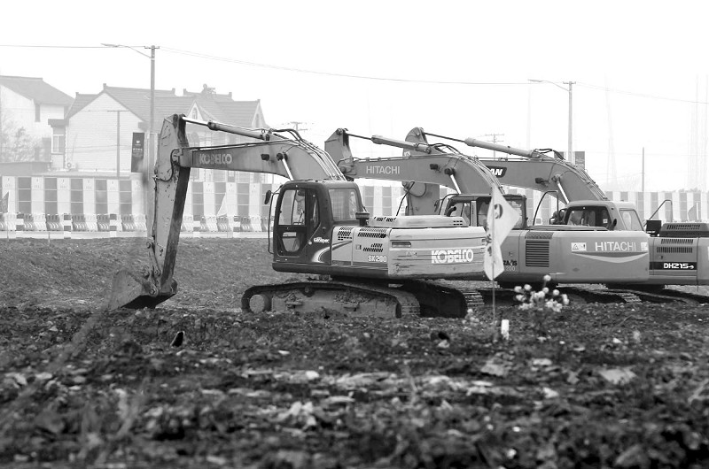 4月7日,上海迪士尼乐园项目工地,挖掘机静待开工。据上海市有关部门证实,上海迪士尼乐园项目将于4月8日开工。该项目是中国内地首个、世界第六个迪士尼主题乐园。据介绍,经批准的上海迪士尼项目一期工程总投资为245亿元人民币,首期项目将于“十二五”期间建成开园。(新华社发)