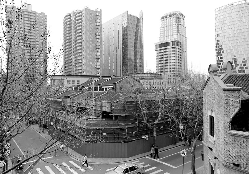 4月6日,上海中共“一大”会址被脚手架围起。为庆祝建党90周年,上海中共“一大”会址从今年2月18日起至5月31日进行整修维护,内容包括内外墙粉刷和修缮。整修期间,“一大”会址旁的纪念馆照常对公众开放。 (新华社发)