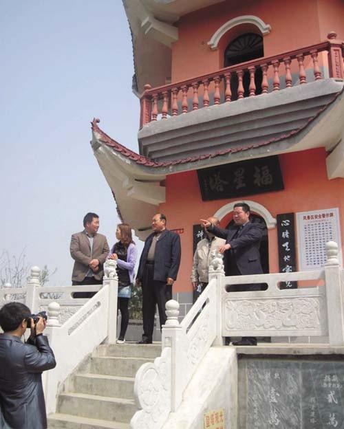 殷店镇近年加大旅游业的开发力度,通过招商引资的办法,重点建设塔儿山风景区。目前,该景区已建有福星塔、祈福钟、梨苑楼、塔汝寺、祖师殿、仿古一条街等十多个景点,吸引了众多的游客前来观光。图为4月10日,一群游客在随县殷店镇塔儿山风景区福星塔游览。(本报记者 金鸣 摄)
