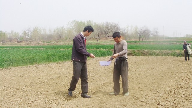 当前正值播种育秧关键时期,随县农业局驻村工作组针对唐县镇双丰村缺水实情,大力推广节水避灾育秧新技术—旱育秧。图为农业技术人员在双丰村一组严传海田中现场指导农民旱育秧播种。(本报记者 采阳 通讯员 胡涛 摄)