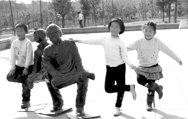 炎帝神农故里风景区建设不断完善丰富,人文气息更加浓厚,一些具有传统风土人情的雕塑,勾起成年人的童年回忆,又成为少年儿童的好伙伴。(本报记者 张顺 摄)
