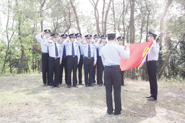 ,缅怀先烈,继承传统,弘扬“忠诚、敬业、团结、奉献”的特警精神。图为特警队员在党旗下宣誓的情景。(徐军国张俊波摄影报道)