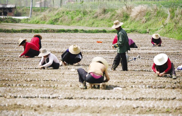 随县均川农民日前正在培育松树幼苗。村民们介绍,他们培育的松树苗,不仅满足当地的需求,还销往邻近的县市。 (本报记者 孙洪涛 摄)