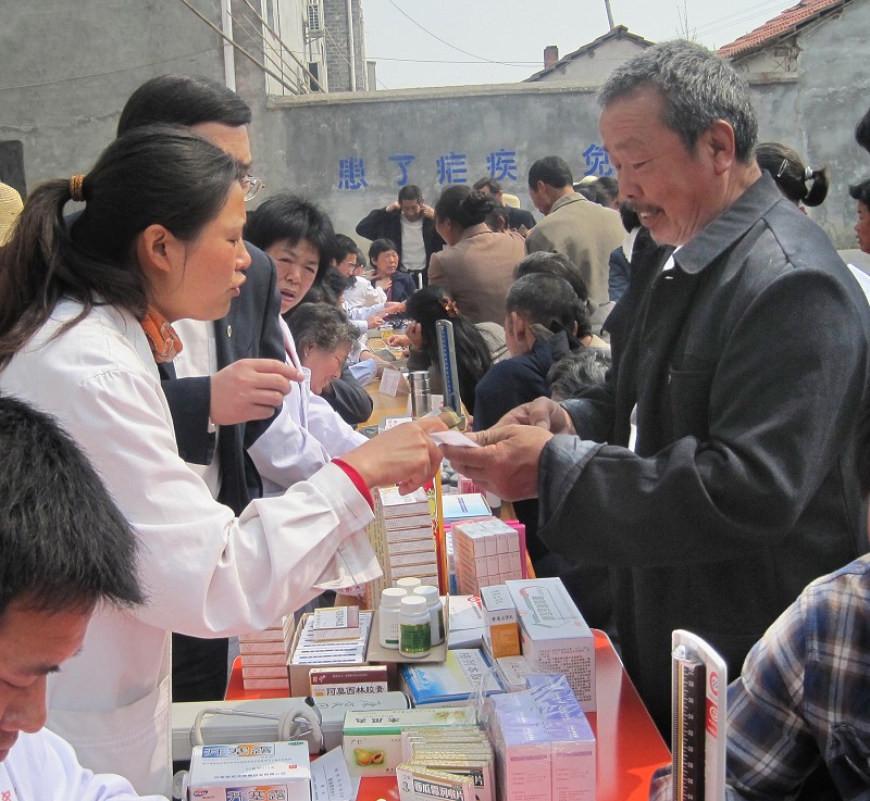 ▼市卫生局“三万”活动工作队在随县洪山镇高尖山村义诊和免费发放药物。(杨国华 摄)